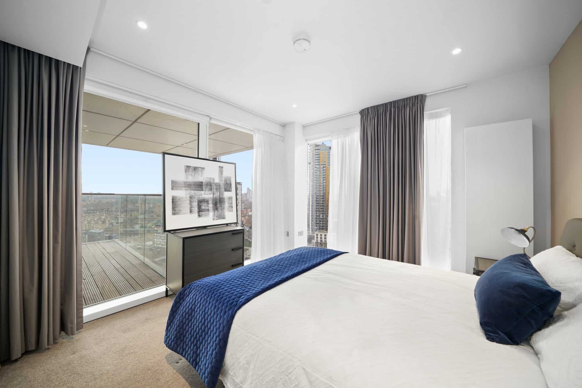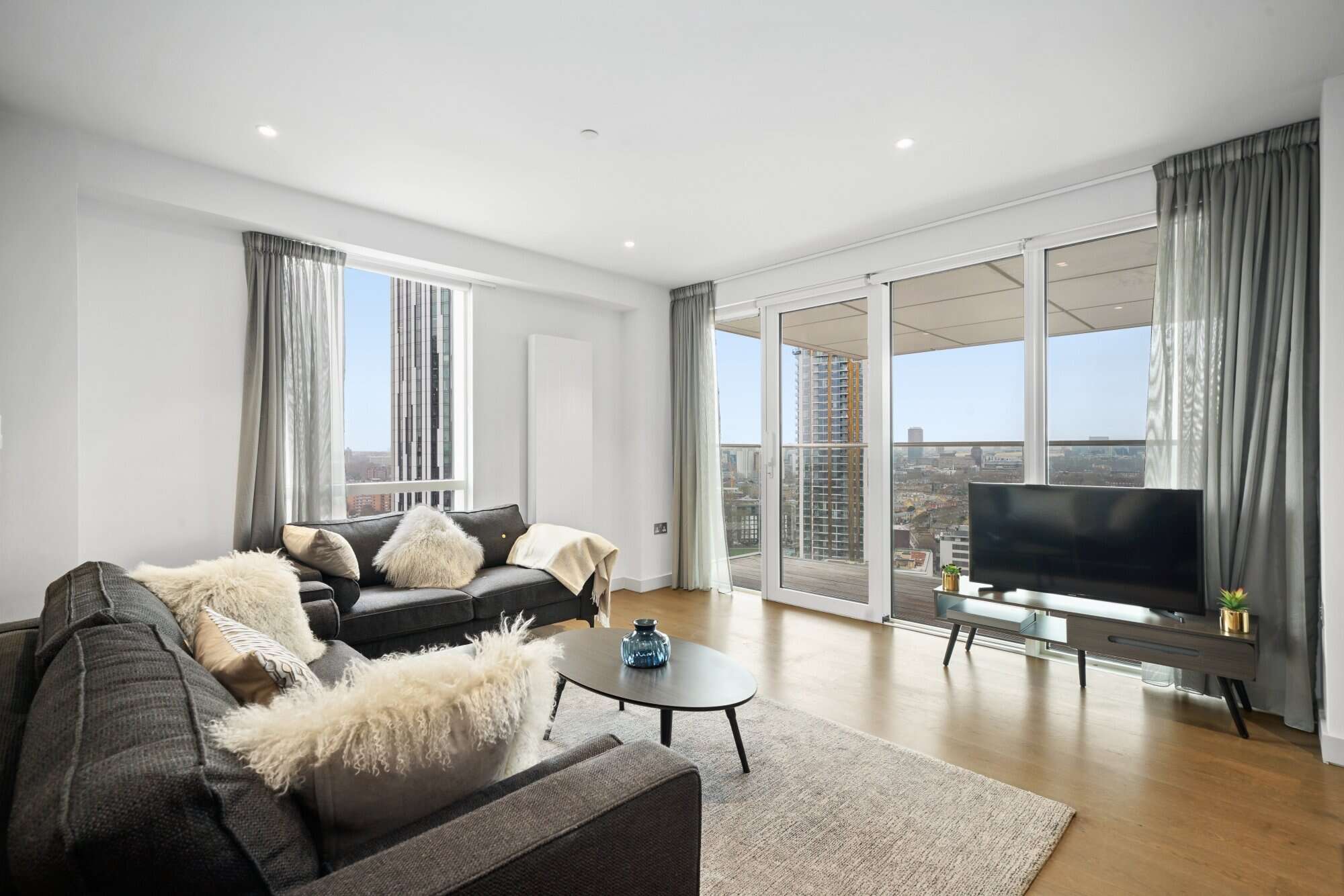 Situated on the 17th floor of Mawes House, this three bedroom, two bathroom home is available to rent fully-furnished.