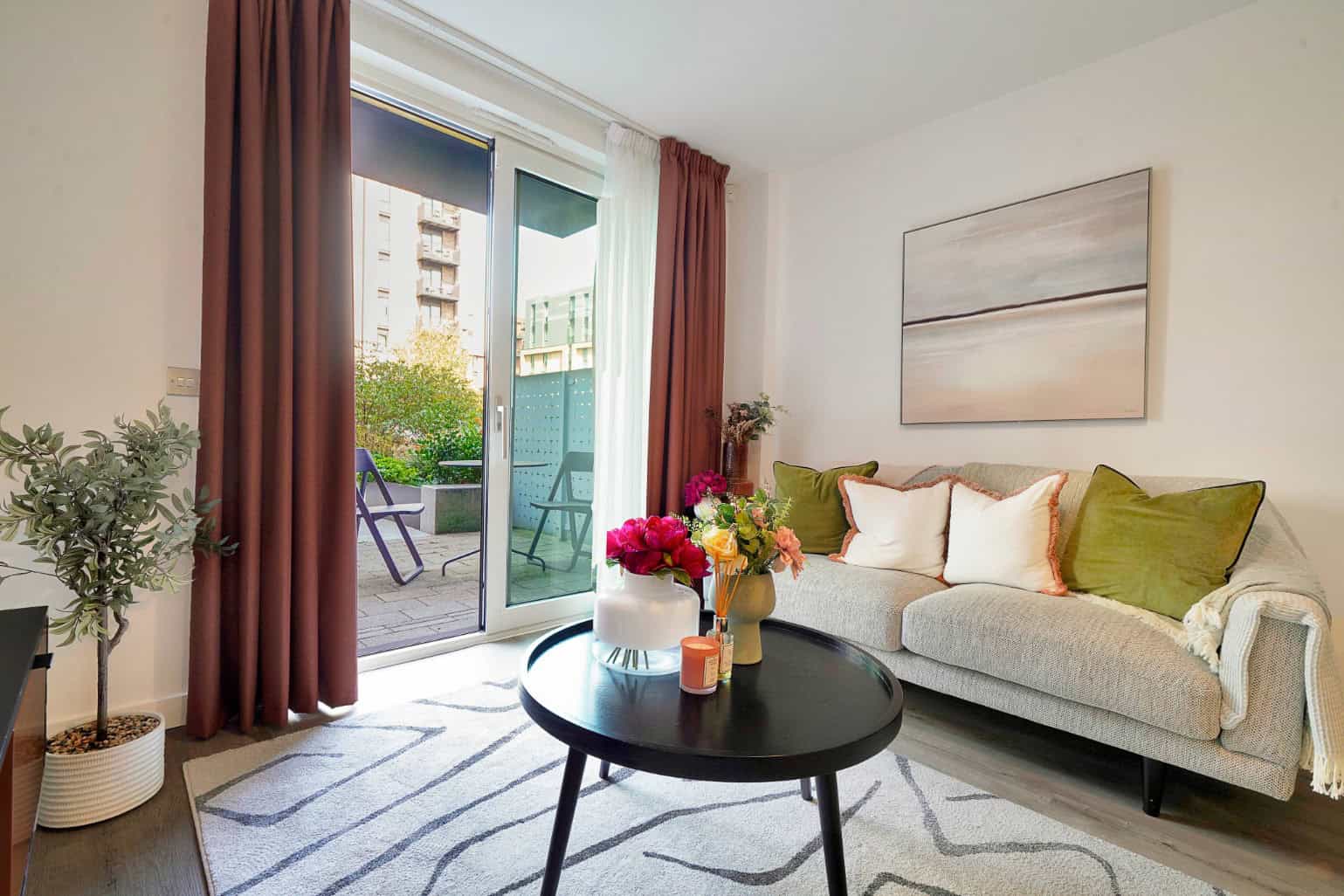 A bright and airy one bedroom apartment, fully-furnished with modern interiors, integrated appliances and Wi-Fi included, as well as access to co-working spaces, free exercise classes and regular resident events.