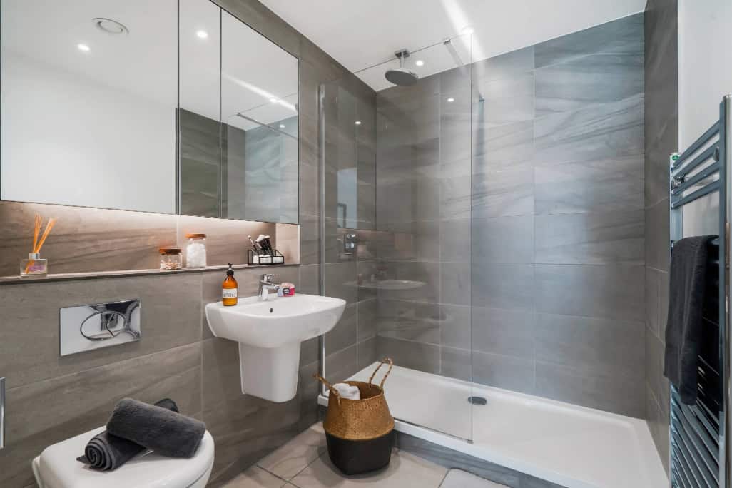 The double bedrooms come complete with built-in wardrobes, a chest of draws and side-tables. The bathroom is completed with a rainfall showerhead and heated mirrors to prevent steaming, with hidden storage.